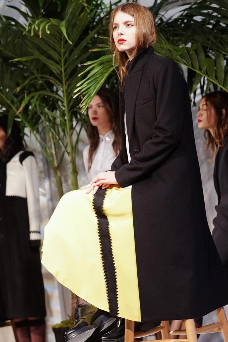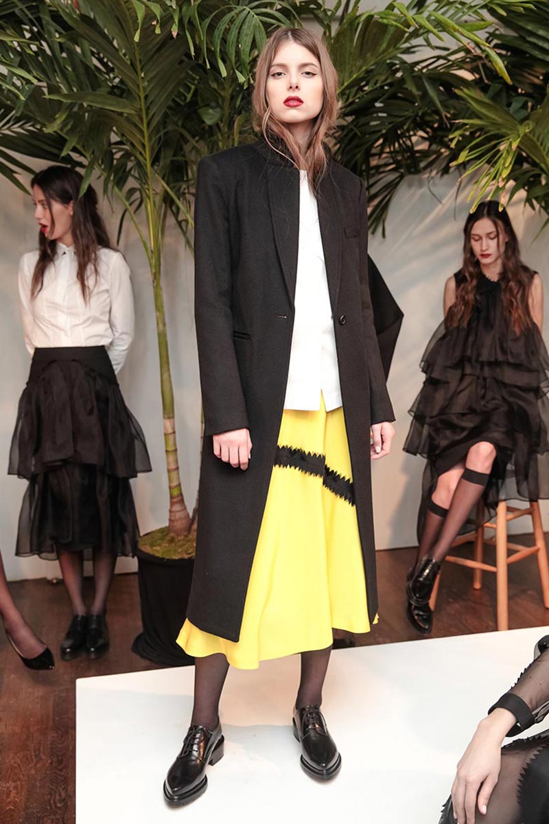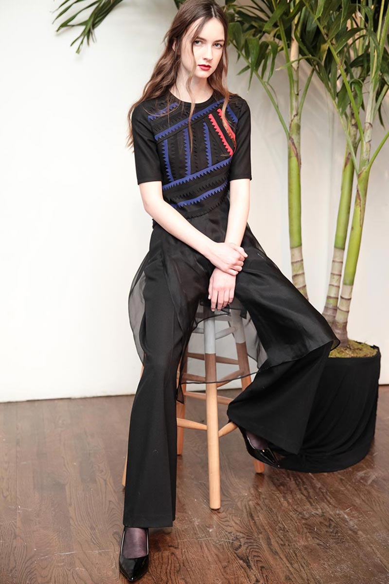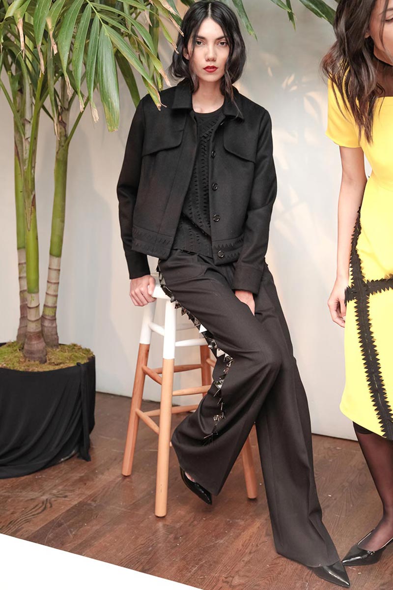 David Batchelor's "Magic Hour" light installation, architect Tadao's bold concrete staircases, and plate tectonics were all inspirations for Youssef's new F/W 2015 collection. The collection this season features smooth matte silk and polished metal (recreate geometric structures and cracks) zig zag appliqués, and his signature triangular and folded details. Delicate black and navy eveningwear made from silk organza layers had graphic accents in red, yellow, and blue jewel tones. A beautiful balance between romantic and sartorial; key pieces includde Italian cashmere coats, wool skirts, and cotton shirting.