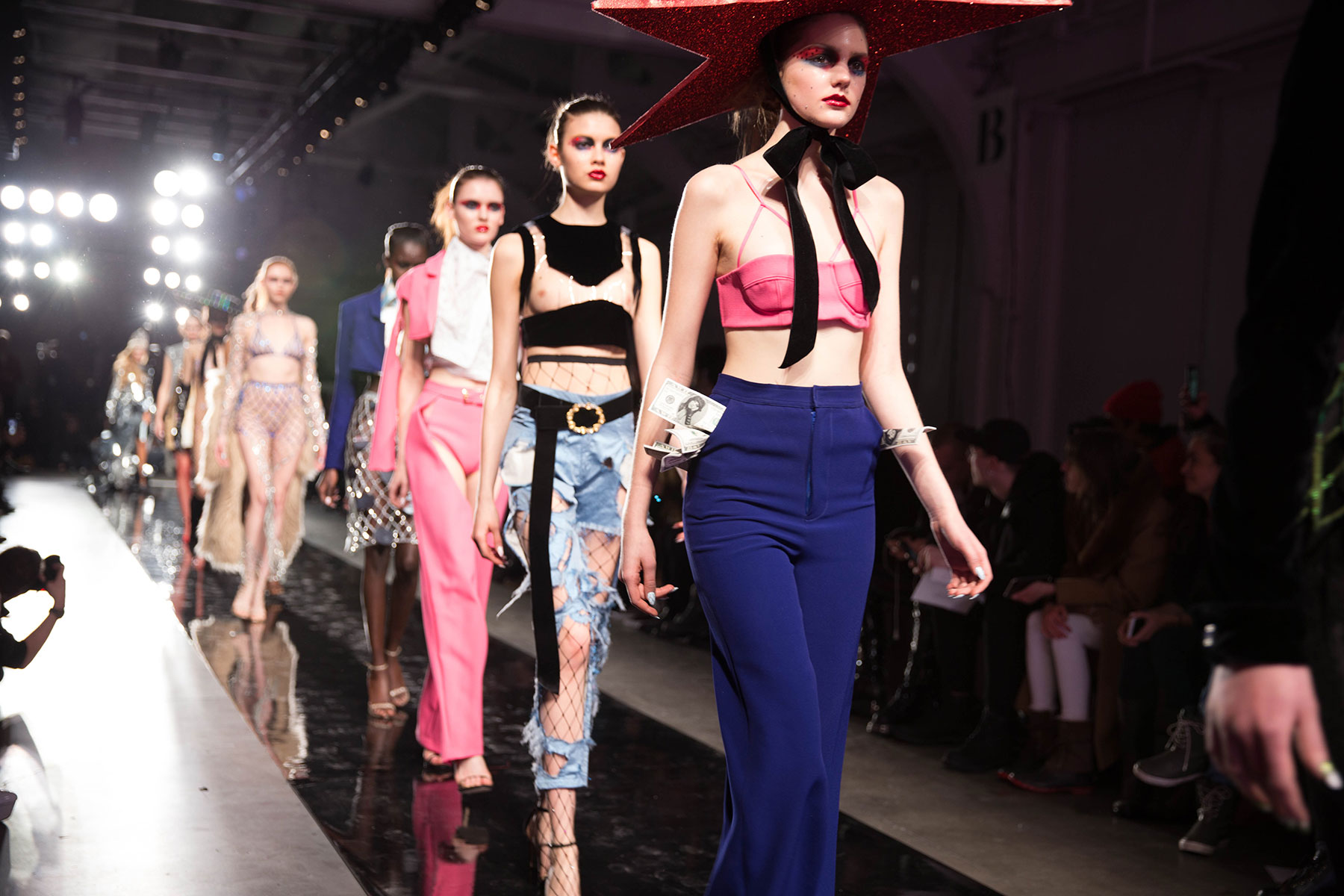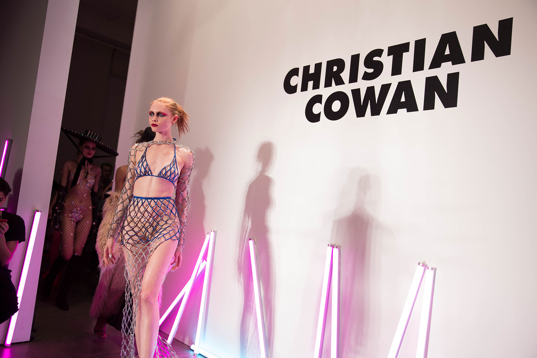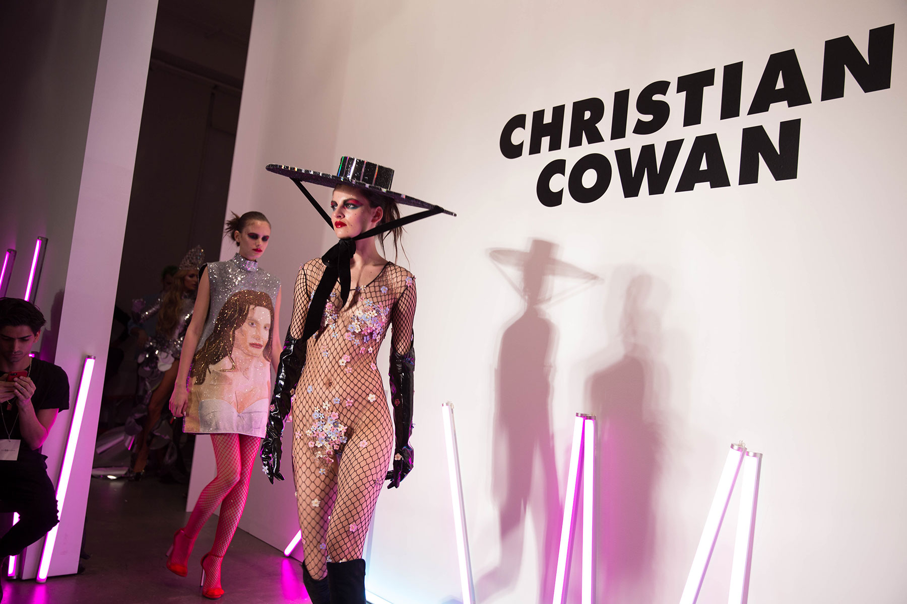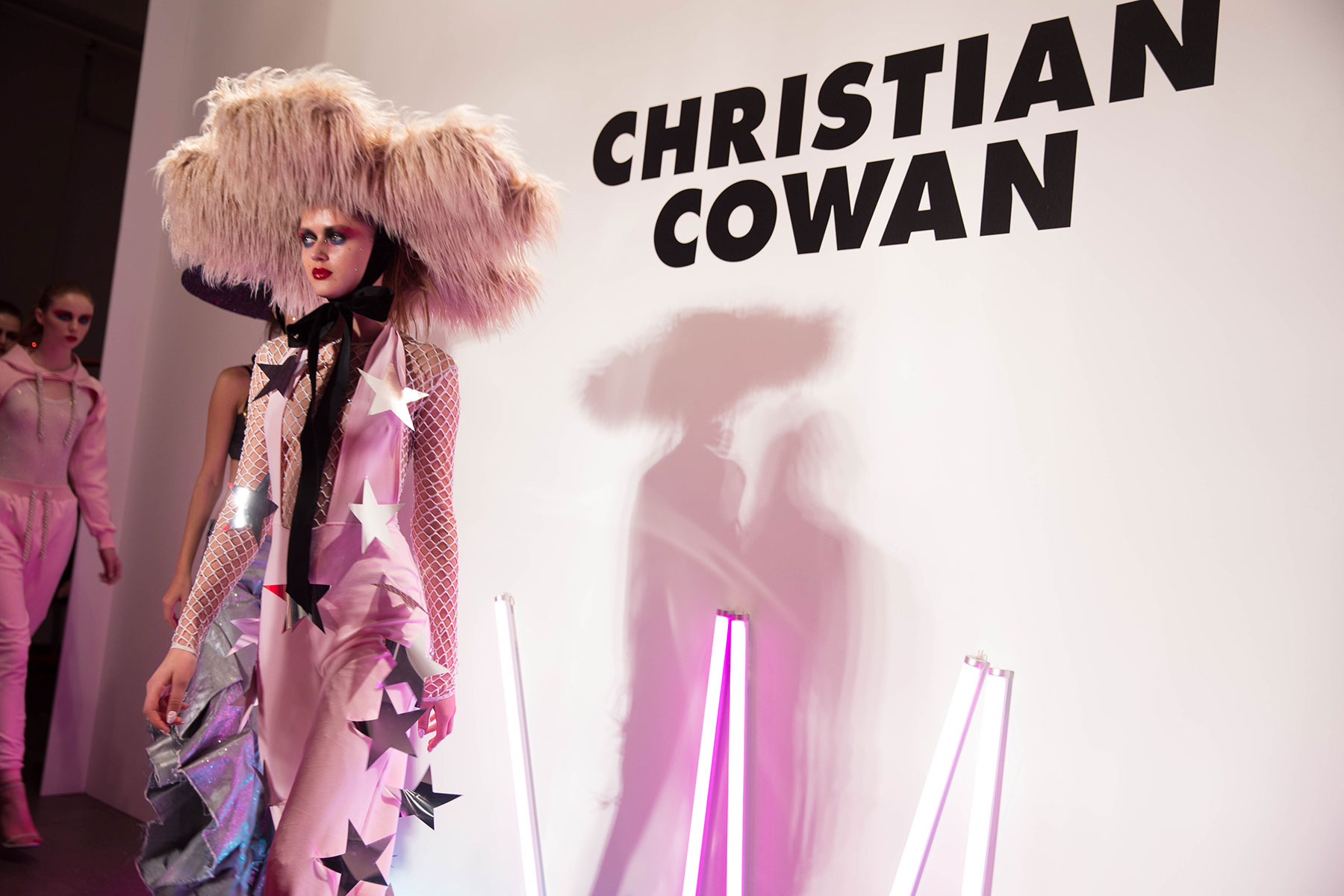 A pesar del frio inclemente propio del invierno en NYC y la nieve hay que cumplir con las tareas de un periodista y por ello a pesar del clima llegue a los estudios de Pier 59 y con un clima muy acogedor y con luces fucsia neon espere pacientemente el debut del diseñador Christian Cowen. A pesar de ser recientemente graduado en London College of Fashion. Y es que su nombre empezó a sonar desde antes de su debut gracias a clientes muy especiales como Lady Gaga & Miley Cyrus en parte eso ayuda mucho para poder llamar atención tanto en buyers o compradores y la prensa.