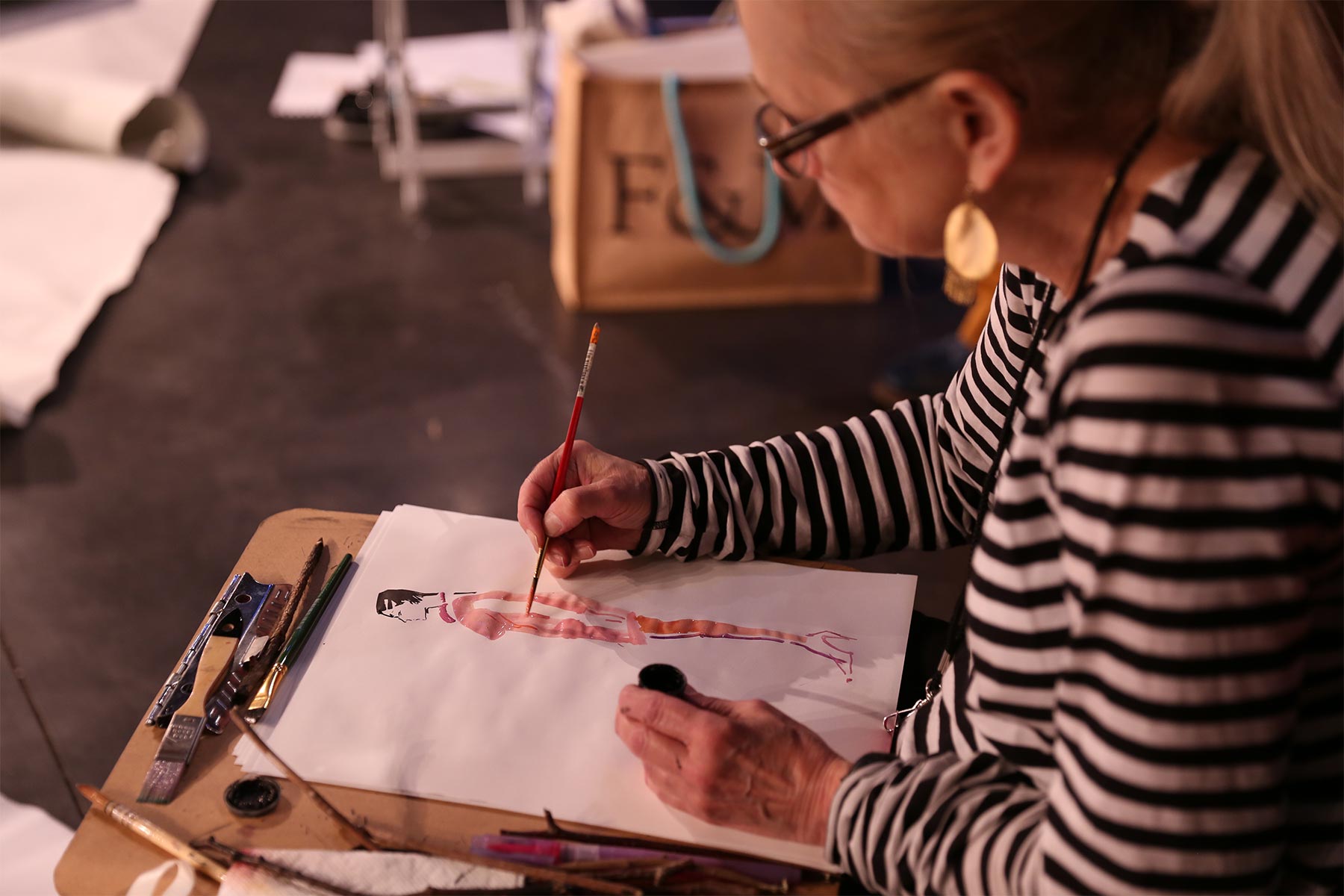 Walking into the presentation you were transported to a modern portrayal of Mount Olympus, with two dozen goddesses (models) floating on a crisp white cloud with artists sketching images at their feet, an image the Goddess of wisdom, Athena would envy. The collection was Grecian goddess with splashes of 70’s disco. From the draped v-neck chiffon caftan in a vivid snake print of sunshine yellow and emerald green colors to the Grecian deep-v silver and gold lame’ gown; it evoked youthfulness and femininity.