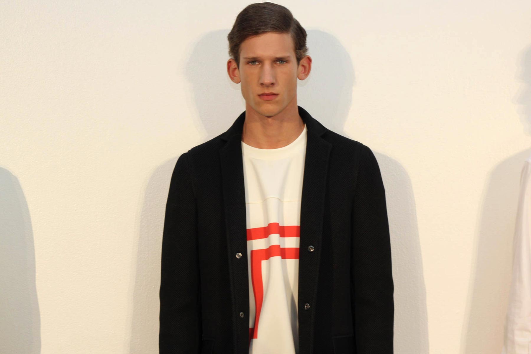 El diseñador como nos tiene acostumbrados sigue alejandose de las formalidades y saliendose de lo común esta vez con lineas, cuadrados, asimetrÃas y figuras gráficas que enmarcaron su vertiente minimalista que esta vez explotaba en los pulcros monocromas con la inyección de color en las lineas gráficas donde el naranja tuvo un gran protagonismo.