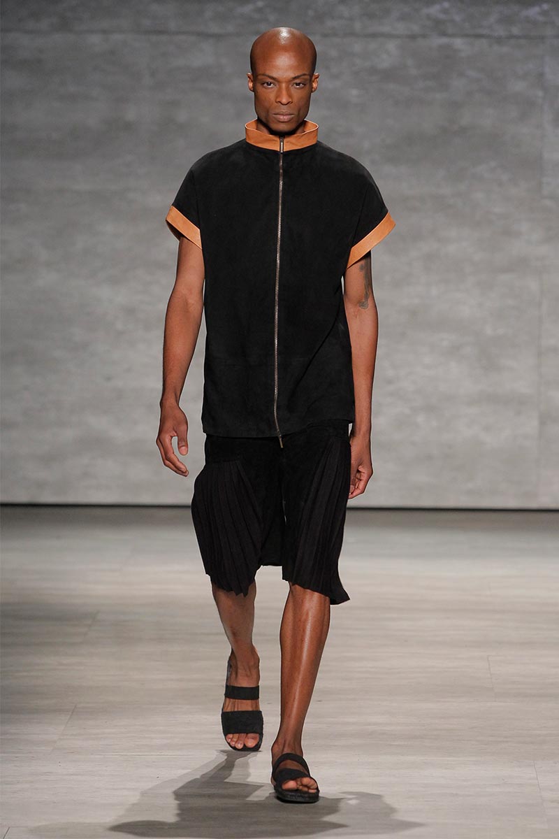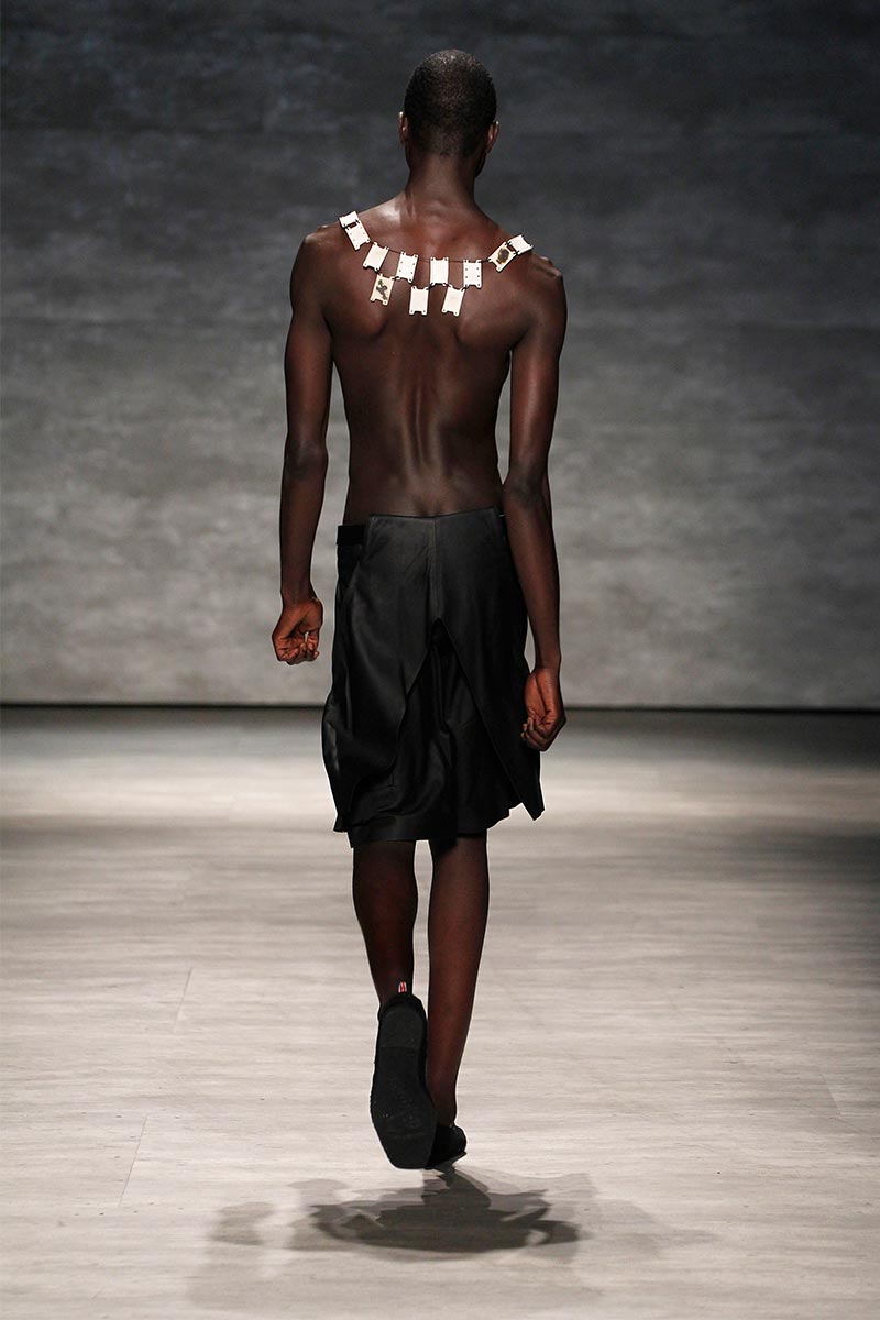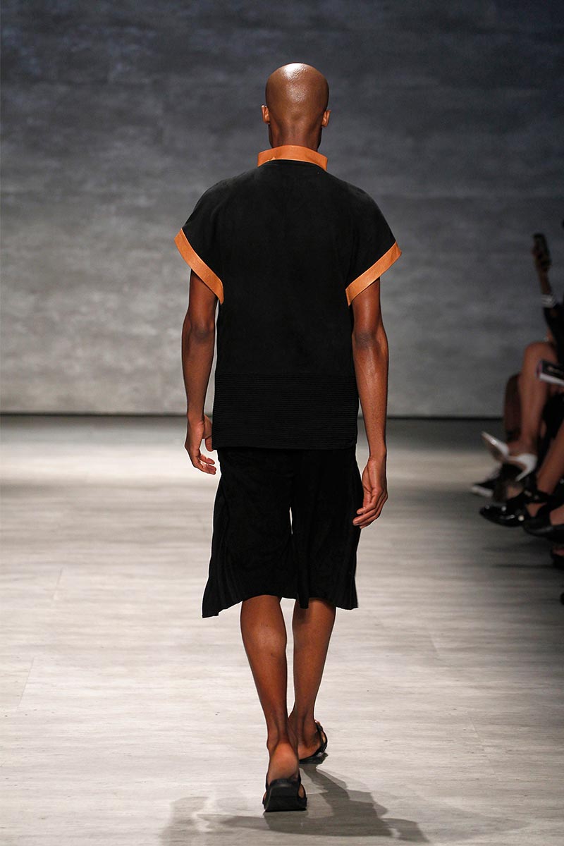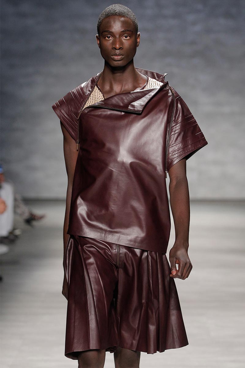 Roberto Etxeberria continua su viaje cruzando y uniendo continentes en esta ocasion fue latente el aire Africano que inspiró su colección Primavera-Verano 2015 sorprendiéndonos una vez mas con un show fuerte, puramente racial y con esa cargada de contrastes que tanto lo caracterizan. El diseñador Español sigue apostando fiel y exitosamente por la piel, su material estrella. La cual trabaja, moldea, y da color y forma de una manera absolutamente asombrosa aportando fluidez, estructura, caÃda, movimiento y mucha frescura a cada uno de susdiseños.