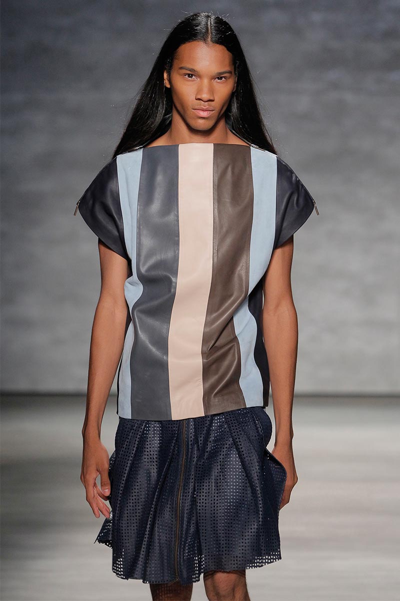 Solo hacia falta esa acertada distorsión asimétrica entre sus cortes, la inmersión de cremalleras, los diferentes pliegues de pieles muy bien tratadas para que queden lo mas livianas posible, la mezcla de texturas y colores y esa magia donde la piel de los modelos también cobran un sensual protagonismo para dar a las prendas de “cuero†un lugar privilegiado en nuestros outfits de verano.