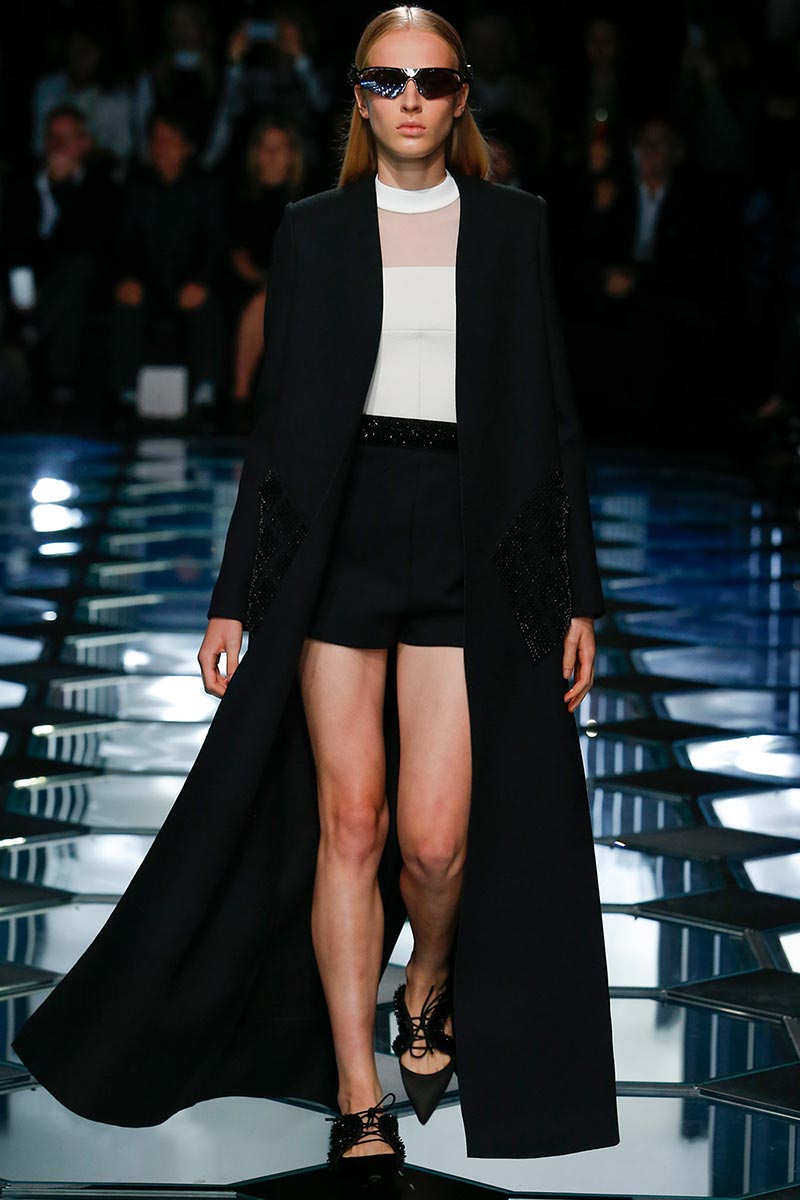 Alexander Wang's aesthetic at Balenciaga is starting to set right in place. His latest outing for Spring 2015 expresses a balance between the history and the remarkable codes that Nicolas Ghesquière stablished during the years of his tenure. A conscious combination of segments that fair enough depict the past, present, and future of the house DNA, through an assertive vision that evokes emblematic and straightforward references; those, particularly ranging from the grid flooring of Cristóbal Balenciaga's atelier, to the clothing that features rhombic-nets reminiscent of Ghesquière's Fall 2011. But between the paying-homage-ideas there's also Wang's own ingredient too, which undoubtedly came from the ready-to-be-worn easiness of the clothes.
