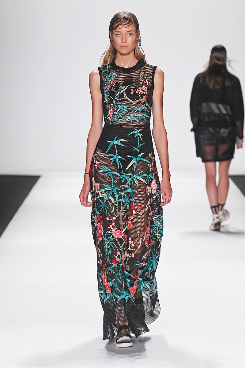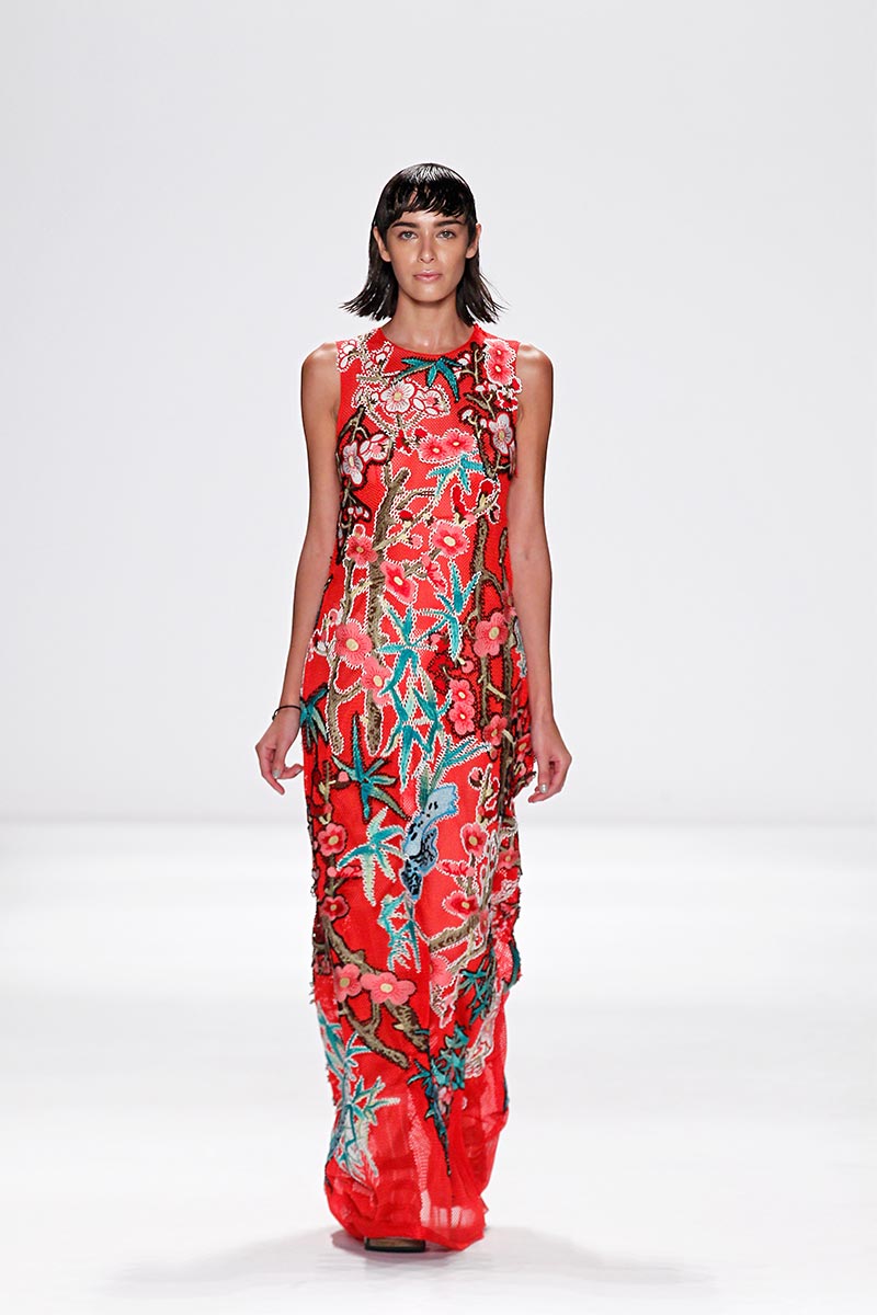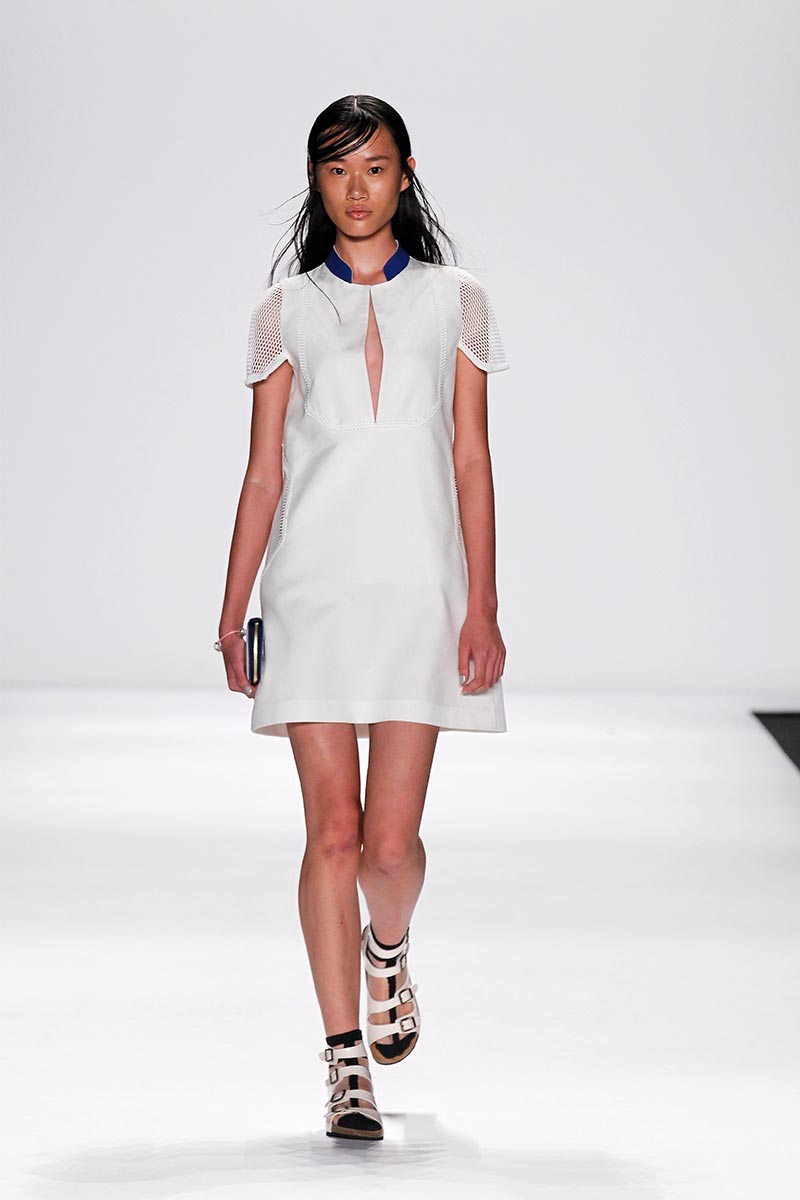 Two words easily summarize Vivienne Tam's eponymous label: heritage and technology. Both taking strong focal points across her collections, she draws inspiration through the diverse historic references found in the orient, while partnering with companies that benefit the industry through technological advances. Yet Tam's collections feel familiar: an east meets west appreciation that is summed to a tech debut of any sort. Changeably, her spring 2015 was all about the clothes -it seemed- or perhaps it felt unaccustomed, fresh, untried even, that the audience was drawn solely and unequivocally by it.