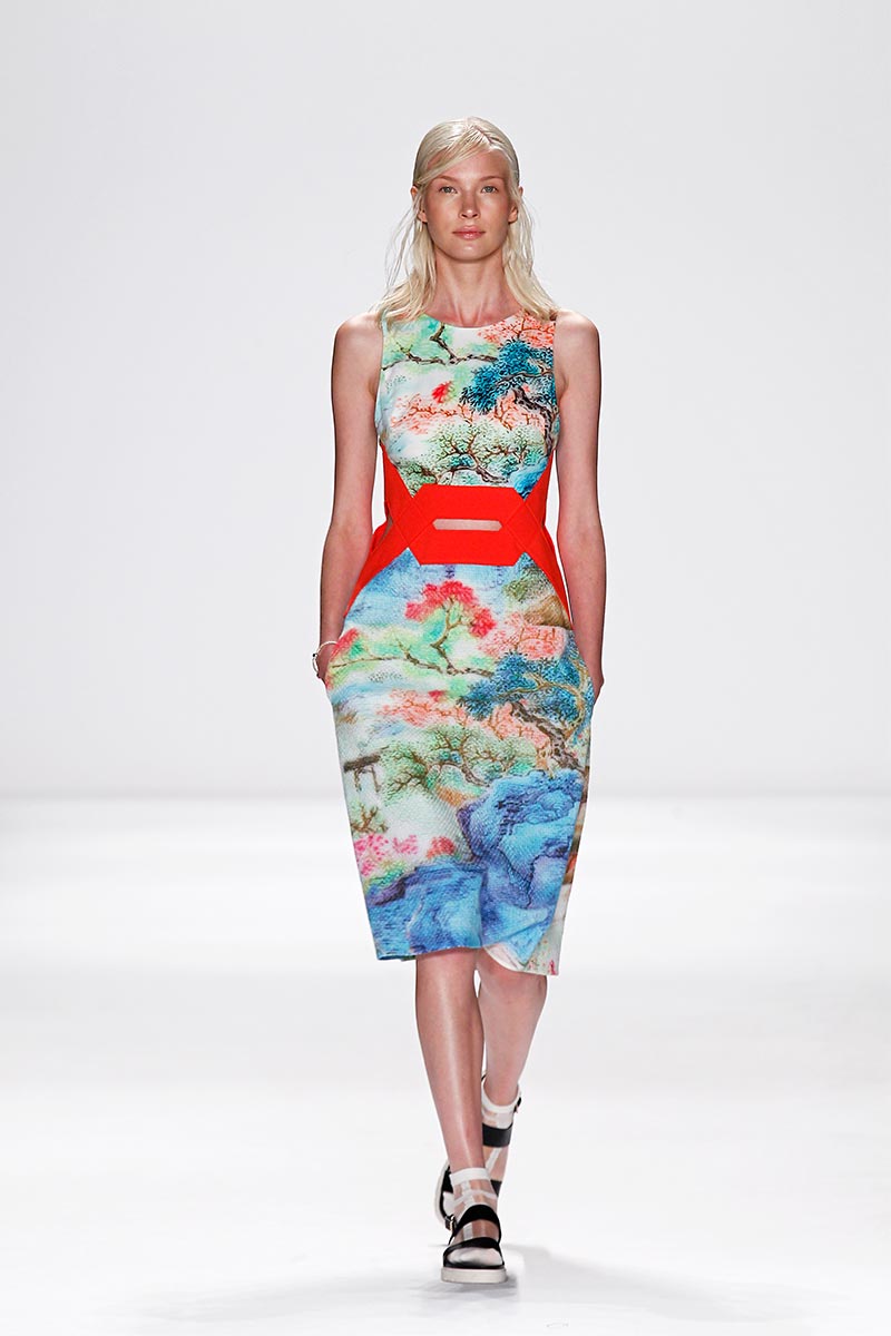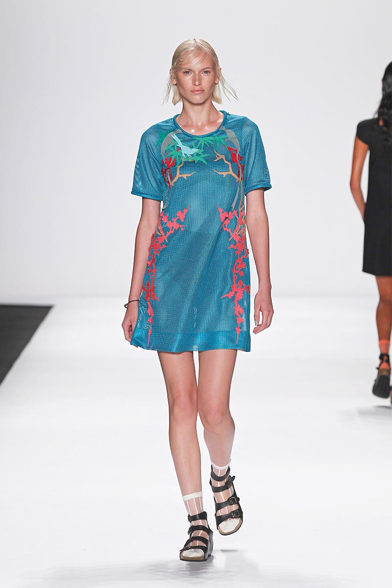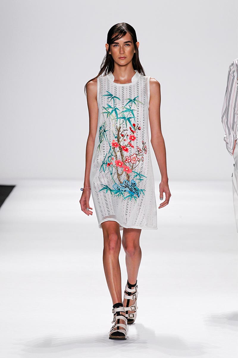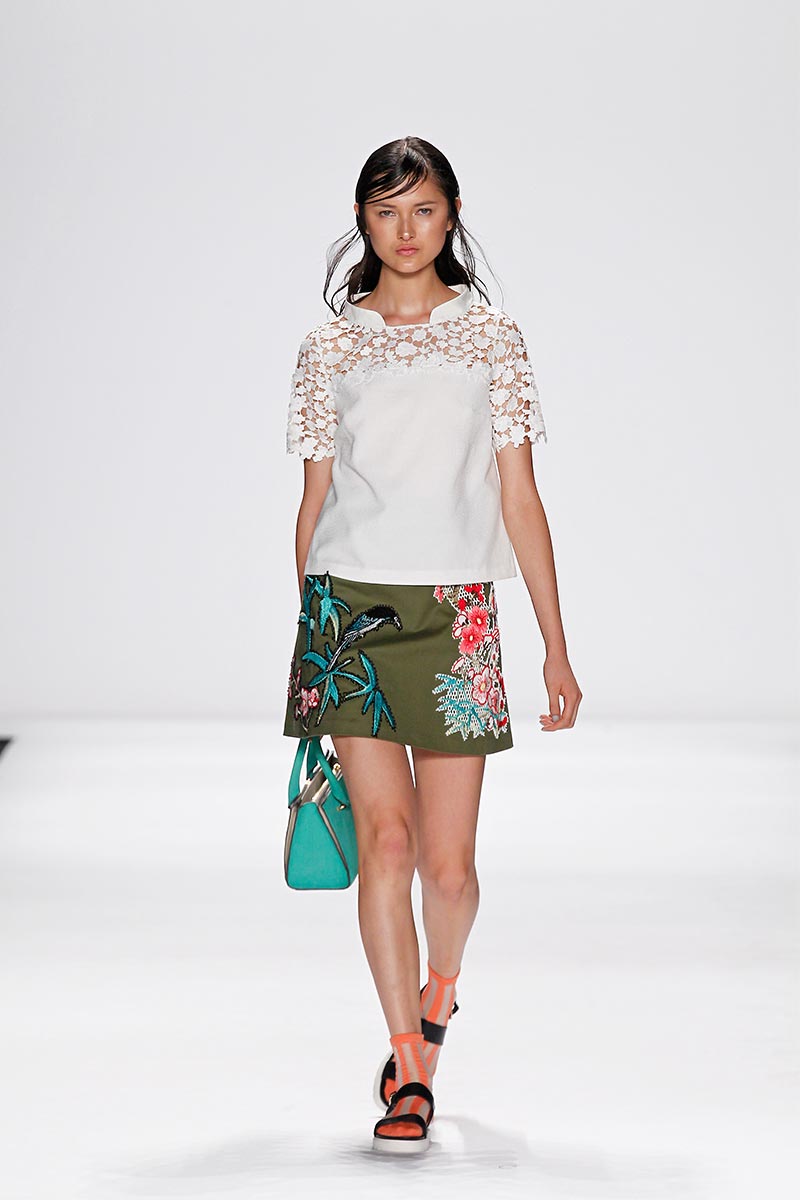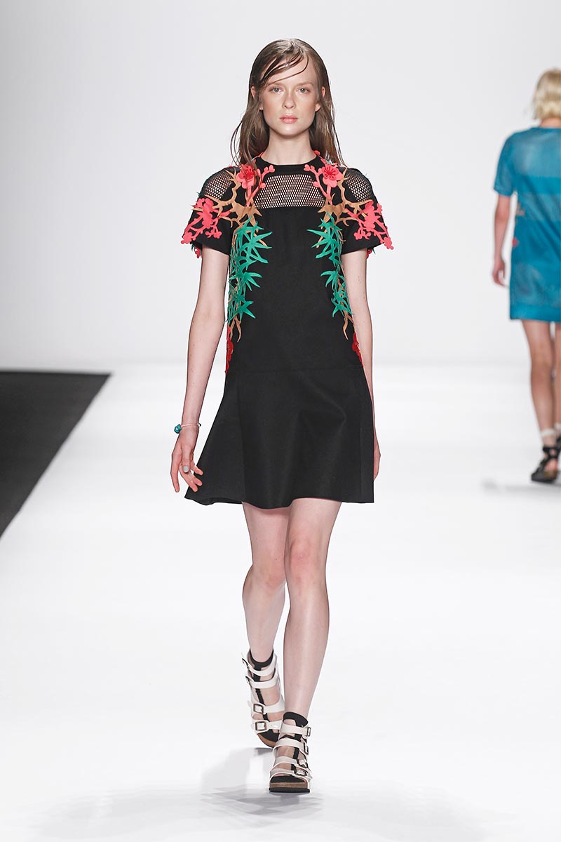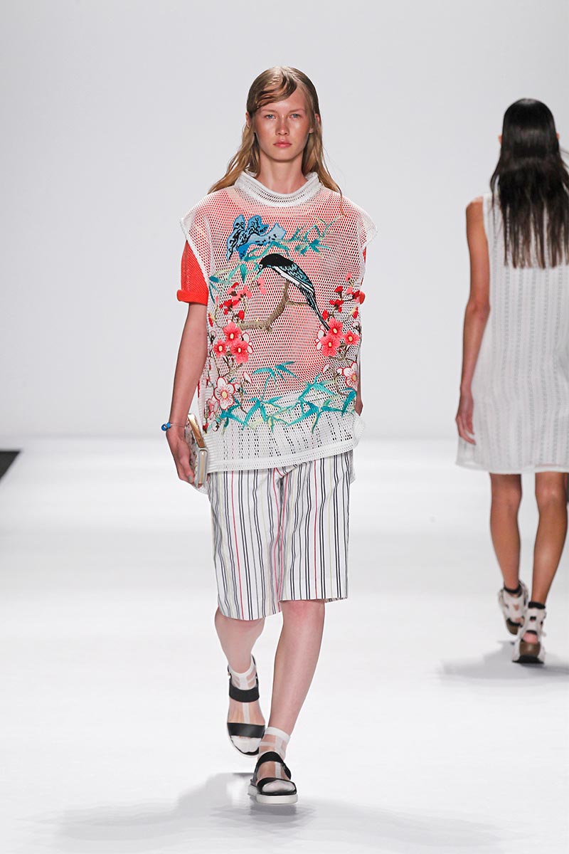 For spring/summer 2015, an opted palette of bright tones clashed with hints of pitch high hues, peaked at Tam’s runway, were the playfulness of tones worked marvellously towards the utilisation of rough-like fabrics and seaming techniques such as embroidering and tonal-stitching laser cut appliqués.